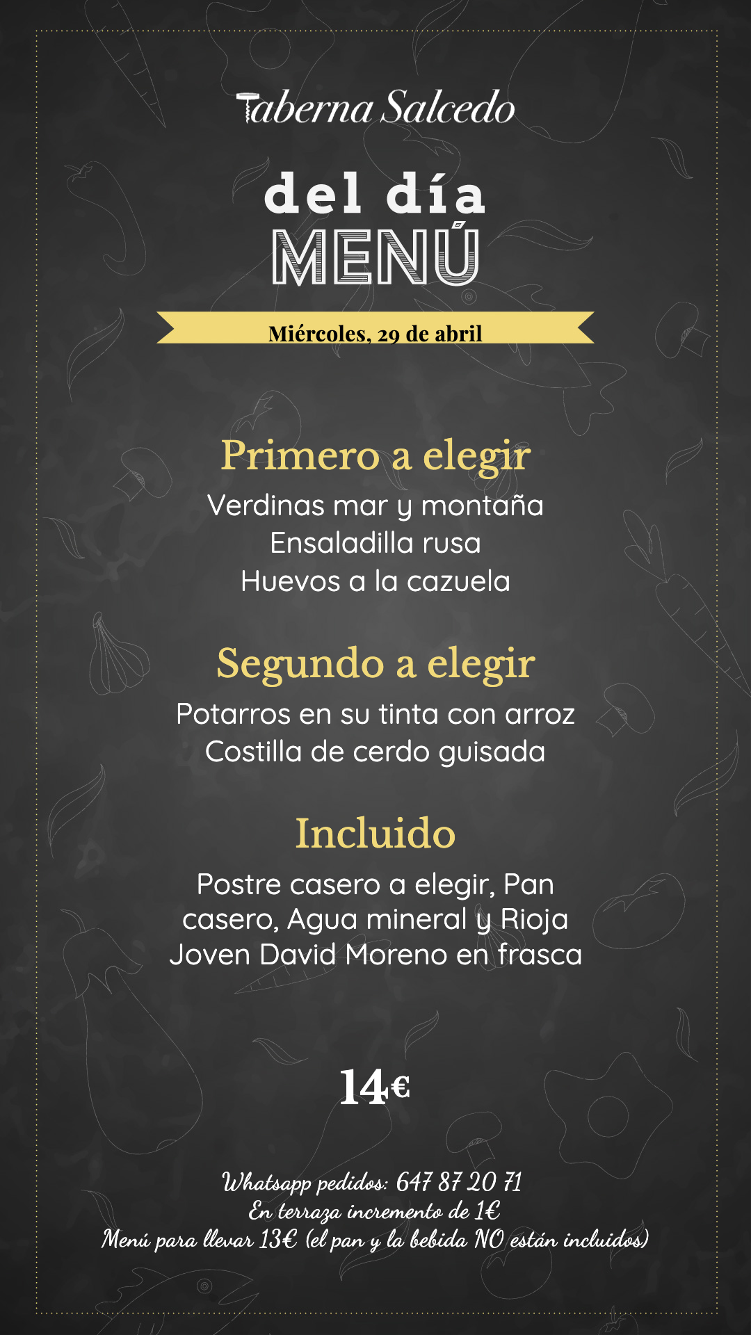 Para reservas en el día llámanos al teléfono 984 28 37 49
